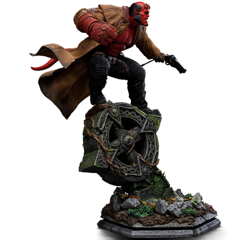 Táto zberateľská socha inšpirovaná filmom Hellboy II: The Golden Army zachytáva Hellboya v ikonickej póze – stojí na náhrobnom kríži, pripravený zasadiť úder svojou legendárnou kamennou päsťou a zároveň drží svoju masívnu zbraň Big Baby. Atmosféra je temná, detailná a presne vystihuje charakter tejto postavy.