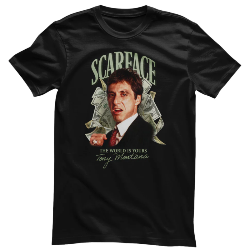 Svet patrí odvážnym. Scarface je ikonou ambície, moci a nezlomného sebavedomia. Kolekcia tričiek Scarface od Hybris vzdáva poctu legendárnemu filmu, ktorý definoval gangsterský žáner a vytvoril jednu z najnezabudnuteľnejších postáv filmovej histórie – Tonyho Montanu.