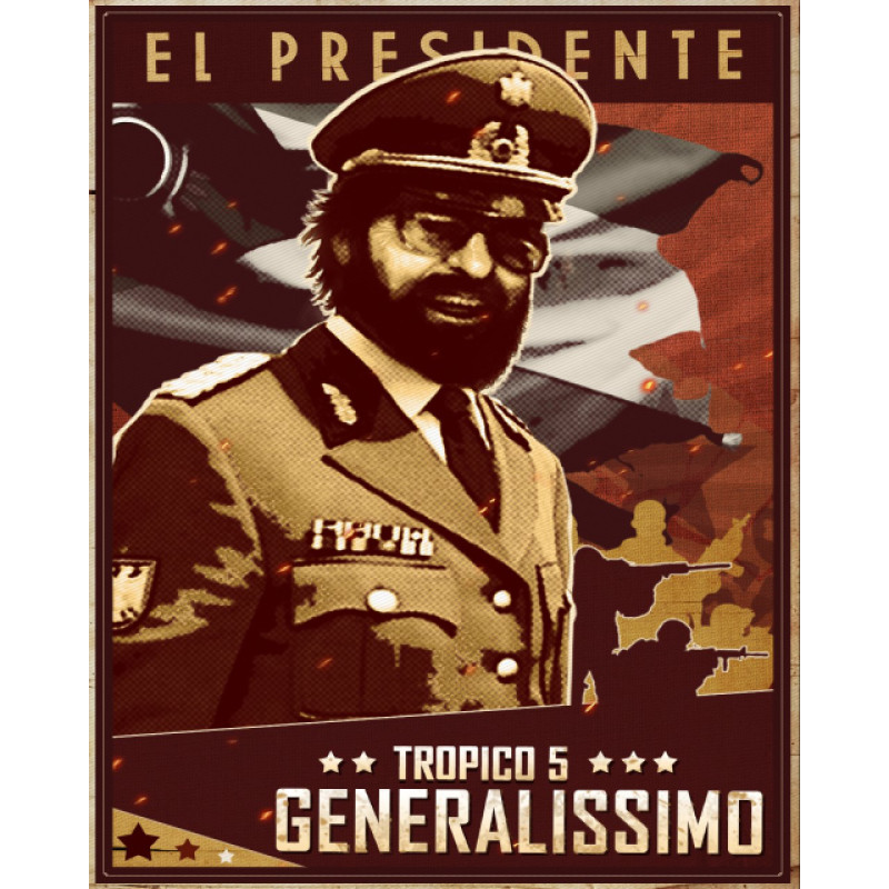 Mysleli ste si, že kubánska raketová kríza sa skončila? Ďaleko od toho! V tejto najnovšej epizóde Tropico 5 sa história opakuje, zatiaľ čo sa El Presidente pripravuje na totálnu inváziu a rozsiahlu vojnu! Postavte majestátne veliteľstvo obrany, aby ste vo svojich nepriateľoch vzbudili strach, nasaďte si generálsky klobúk a ukážte svoje skutočné farby. Nech zvíťazí Tropico! Všetky nové hlasové nahrávky prinášajú vzrušujúce a búrlivé dni 60. rokov späť k životu!
